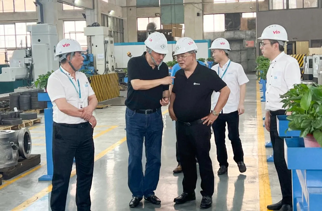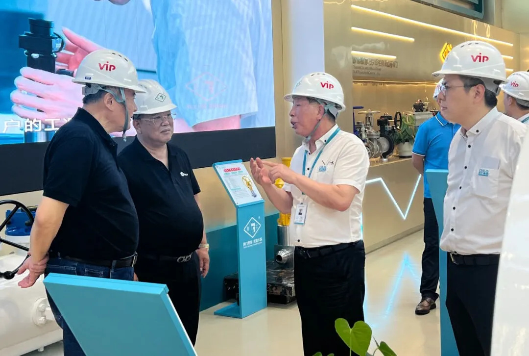 在潘董事長的陪同下,張宗列副會長一行首先參觀了集團的產品展廳,從國標到美標、英標、德標等通用閥門,到超超臨界電站閥、燃氣專用閥、特種材質閥門等,展示了集團廣泛的產品線與卓越的制造能力。每一件展品都凝聚著我們對品質的不懈追求和對技術創新的深刻理解。