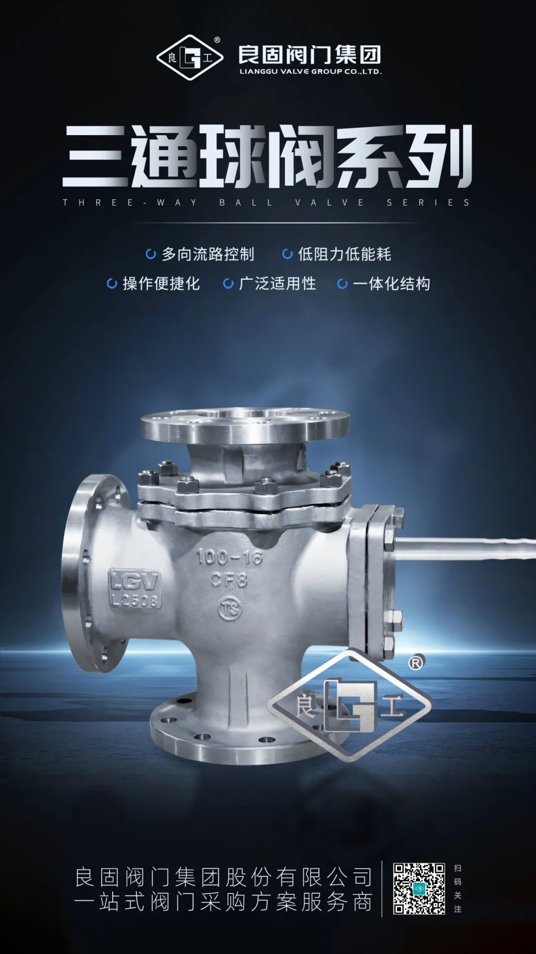 概述良固閥門集團股份有限公司三通球閥系列產品廣泛應用于火力發電、核電、石油化工、煤化工、冶金、建筑、燃氣工程、生物工程等行業。